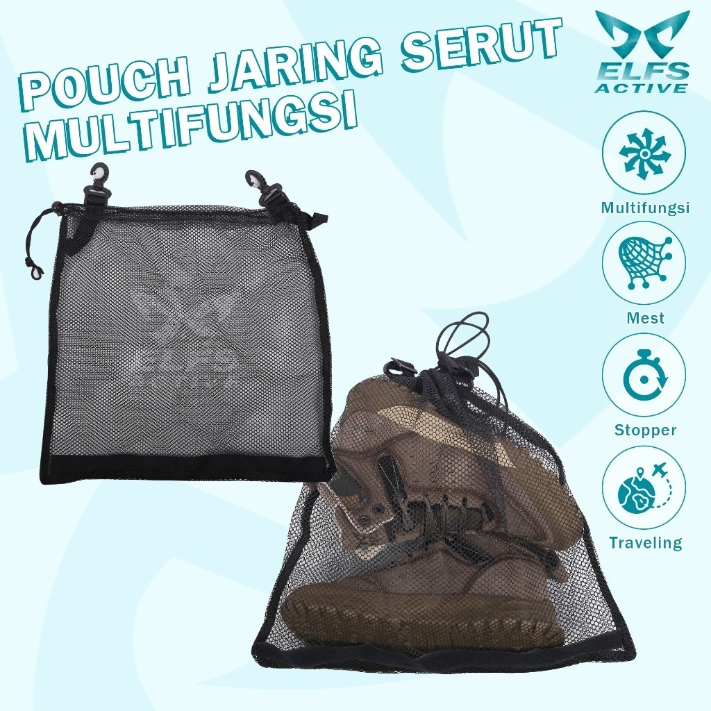 FLASH SALE Elfs Active Pouch Jaring Serut Multifungsi dengan Hook ke tas Carrier