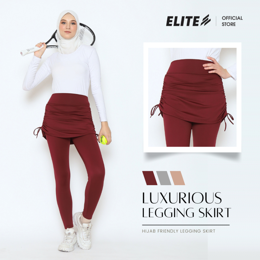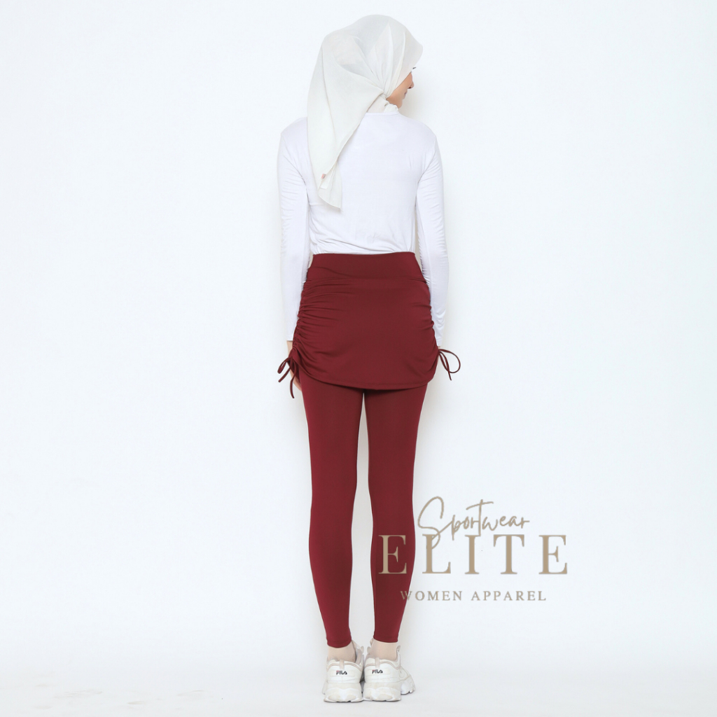 Elite - Legging Skirt 2In1 Drawstring | Hight Waist | Legging Olahraga Wanita| [ Free Kaos Kaki ]