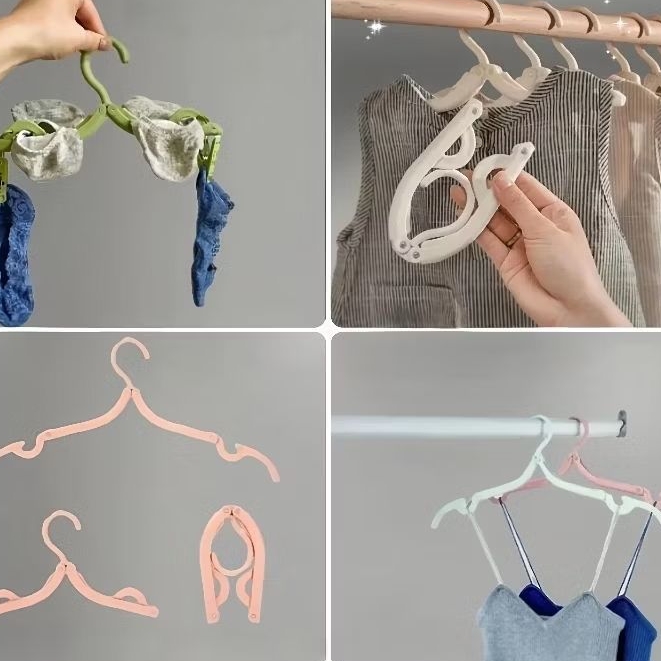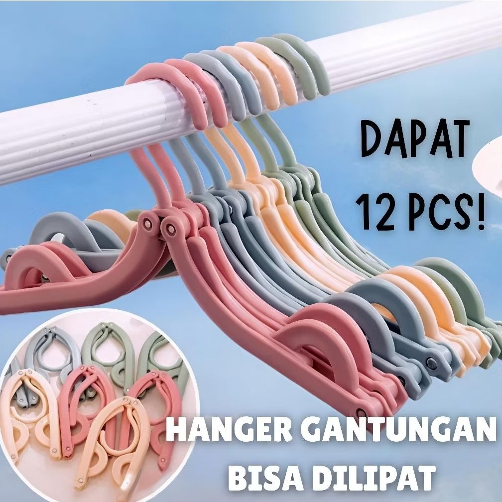 Hanger Baju Lipat Travel 12 PCS Gantungan Baju Lipat Warna Random Handuk Plastik Praktis Hemat Tempat Cocok Untuk Rumah
