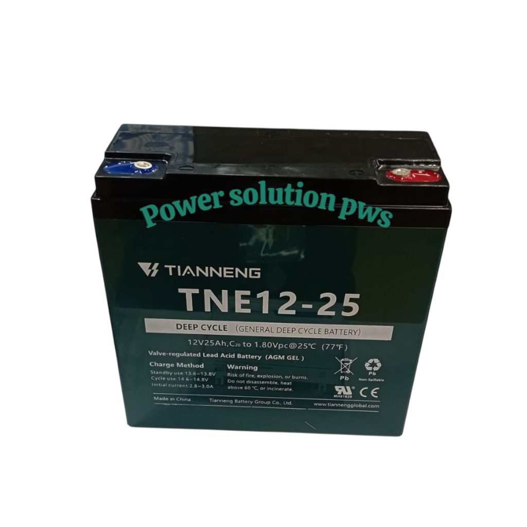 Aki tianneng TNE12-25 12volt 25ah 6dzm20 kepala baut original. Baterai Sepeda listrik / Motor Listrik Deep cycle Tian Ne