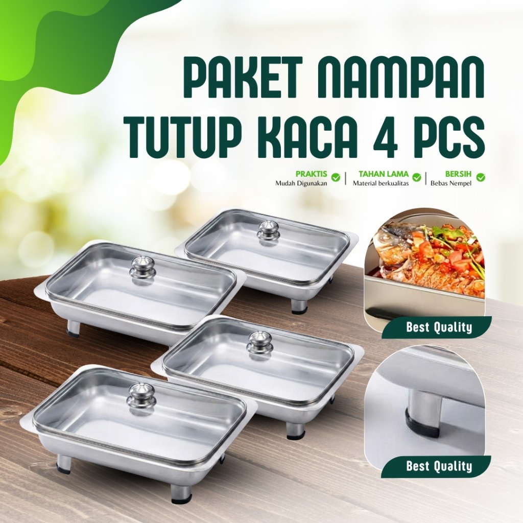 Paket Murah Isi 4 Prasmanan Full Stainless Dengan Tutup Full Kaca Tempat Wadah Lauk