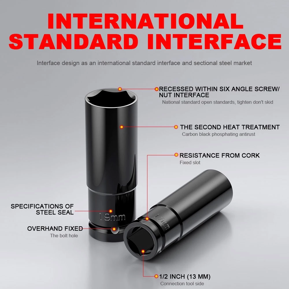 JLD 10PCS Mata Kunci Shock Impact 1/2" CR-V Deep Impact Socket Set Original Promo