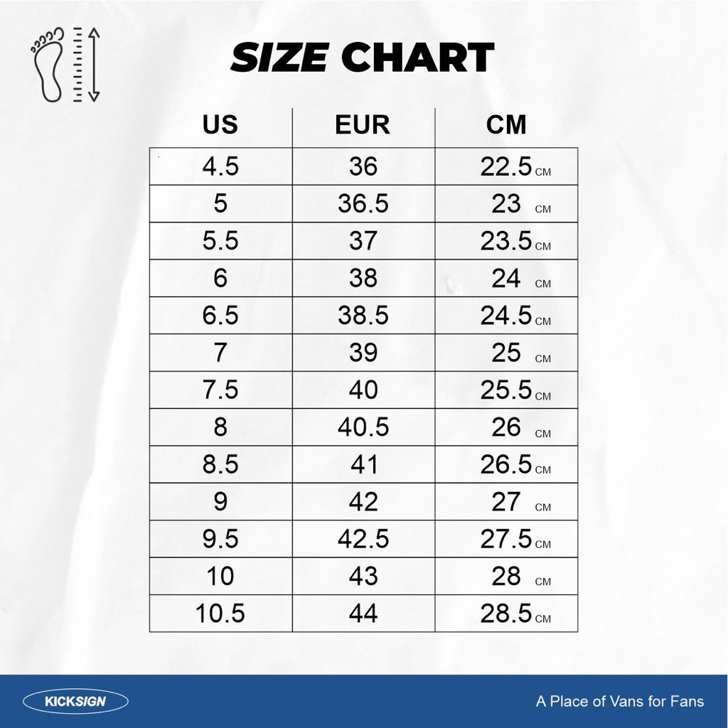 36 EUR / 22.5 CM, 36.5 EUR / 23 CM, 37 EUR / 23.5 CM, 38 EUR / 24 CM, 38.5 / 24.5 CM, 39 EUR / 25 CM, 40 EUR / 25.5 CM, 40.5 EUR / 26 CM, 41 EUR / 26.5 CM, 42 EUR / 27 CM, 42.5 EUR / 27.5 CM, 43 EUR / 28 CM, 44 EUR / 28.5 CM, 44.5 EUR / 29 CM, 45 EUR / 29.5 CM, 46 EUR / 30 CM