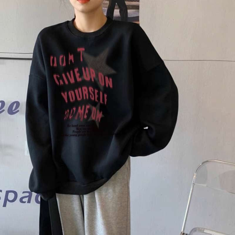 Forteid Sweater Lengan Panjang Oversize Street Style Korean Style/Switer Wanita Oversize (Bintang Bergaris Pola) Korean