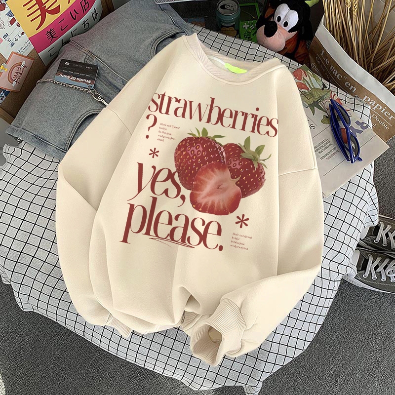 Forteid Sweater Lengan Panjang Oversized Street Style Korean Style/Switer Wanita Oversize Kaos Cetakan Strawberry Letter