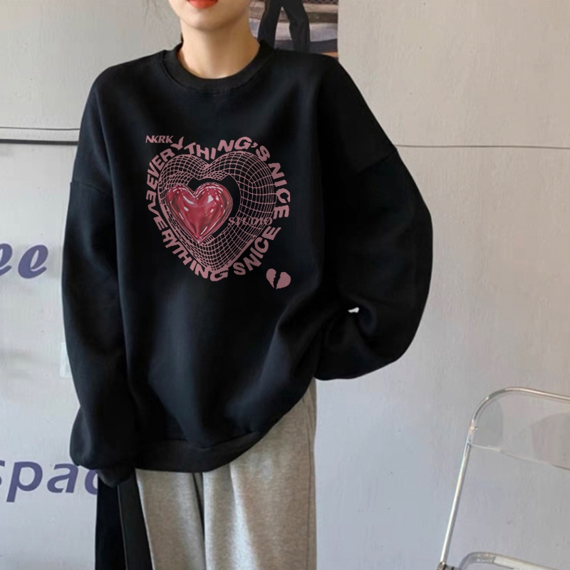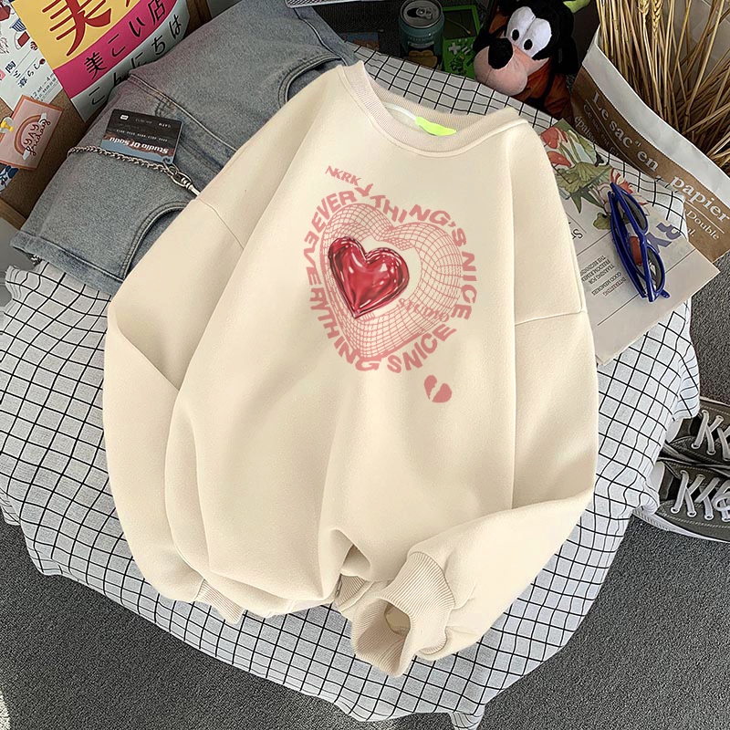 Forteid Sweater Lengan Panjang Oversized Sweater Wanita Premium Korean/Switer Wanita Oversized (Cetak Berbentuk Hati) Ko