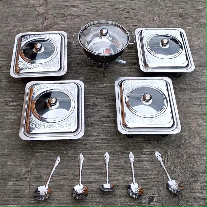 Prasmanan Set Food Warmer-Prasmanan 5 in 1 [4 kotak 1 Bulat 5 sendok]