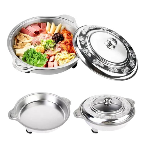 Tempat Prasmanan Bulat Tutup Kaca & Kombinasi Wadah Lauk Set Stainless Steel Fast Food