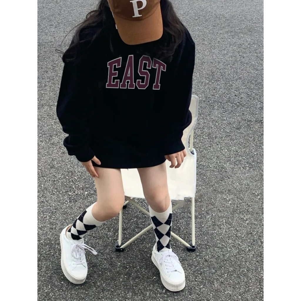 Forteid Sweater Lengan Panjang Oversized Street Style Korean Style/Switer Wanita Oversize Kaos Pencetakan East Printing
