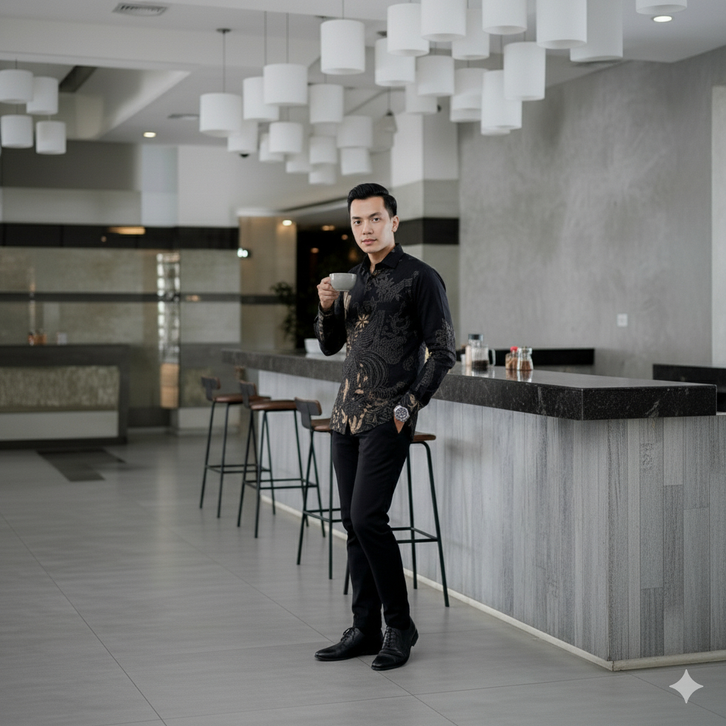 Galeri Batik Ardev - Couple Sarimbit Rok & Kemeja Reguler Warna Hitam Bahan Katun Motif Peksi Seling