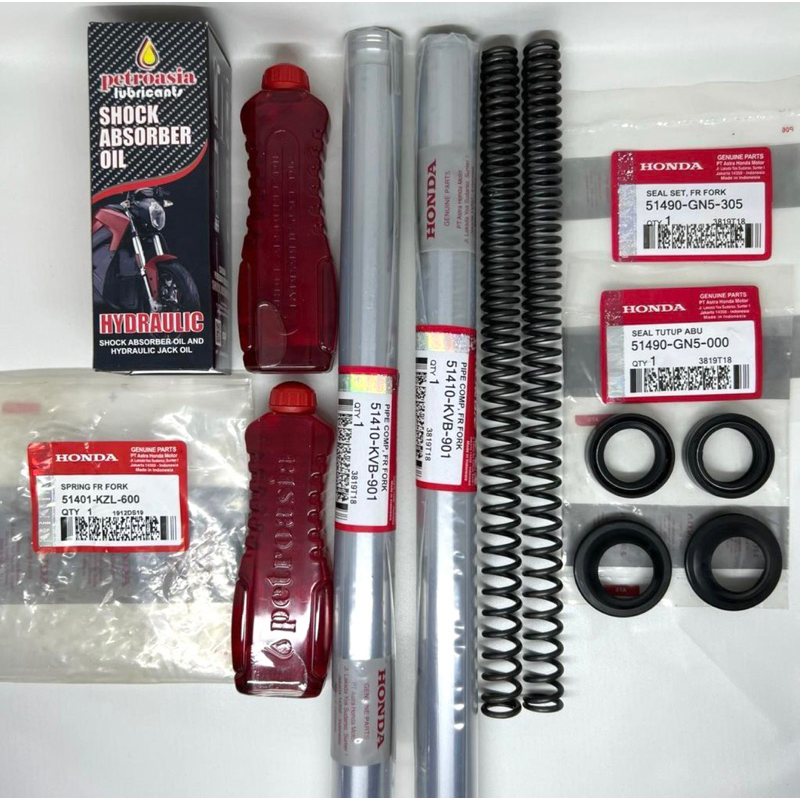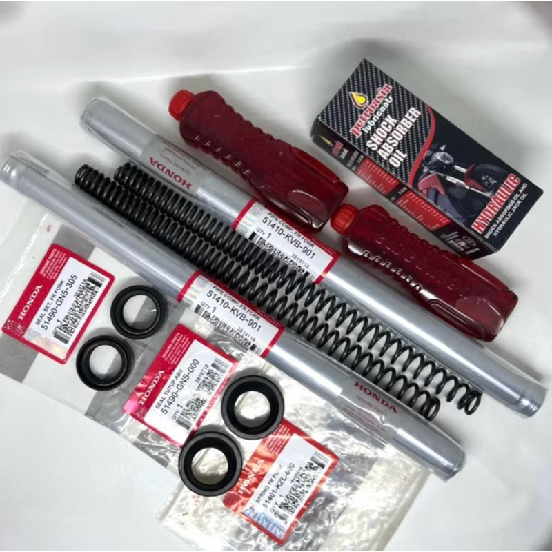 Paket As Shock Depan (KVB) buat motor beat karbu, vario karbu, scoopy karbu, spacy karbu, techno vario 110, vario lama (As Shock 2pcs+Per+Oil+Seal Shock+Seal Abu)