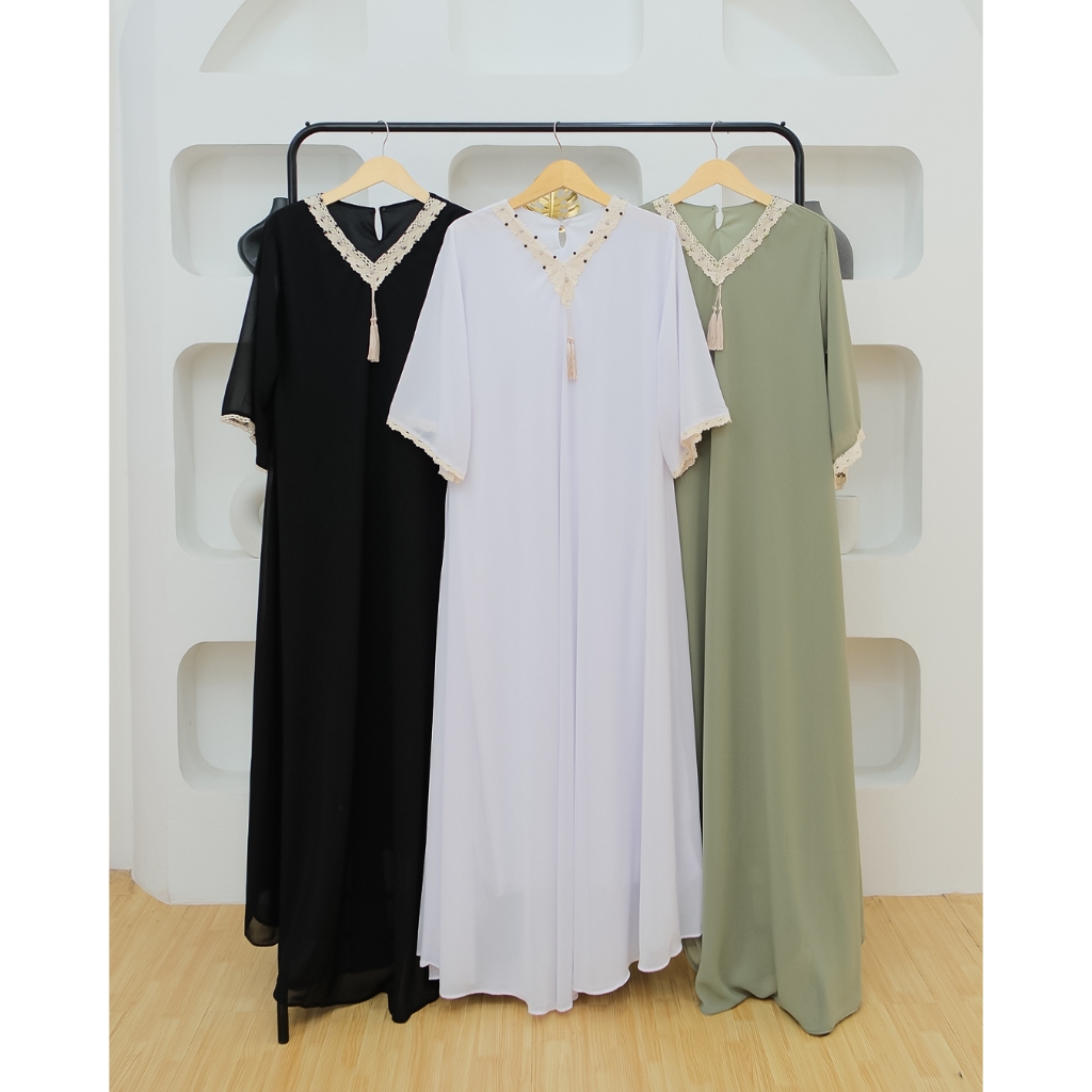 Aurel Dress Korean Style - Gamis Ceruty babydoll - Kaftan terbaru 2026 Lebaran Wanita Jumbo Ld 120