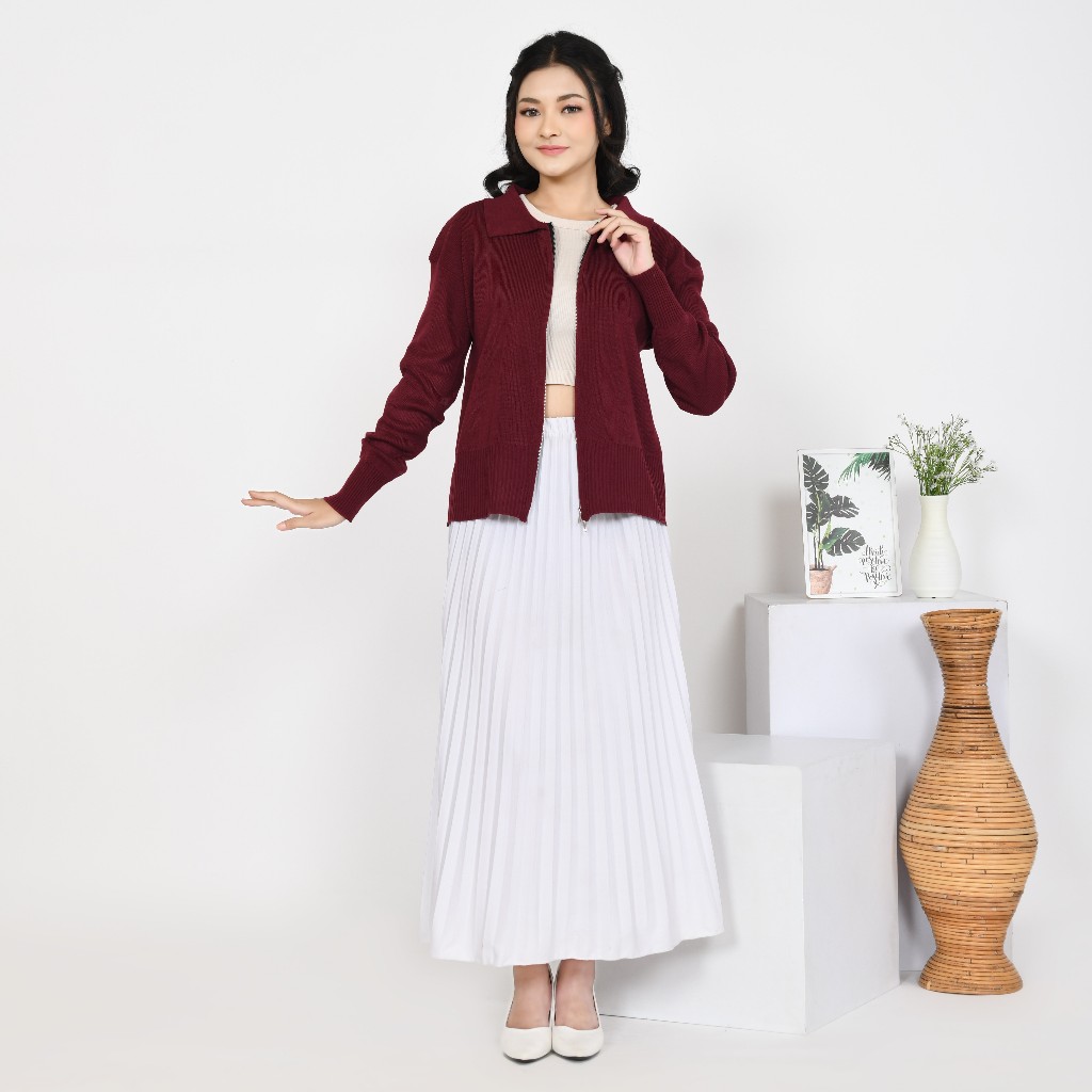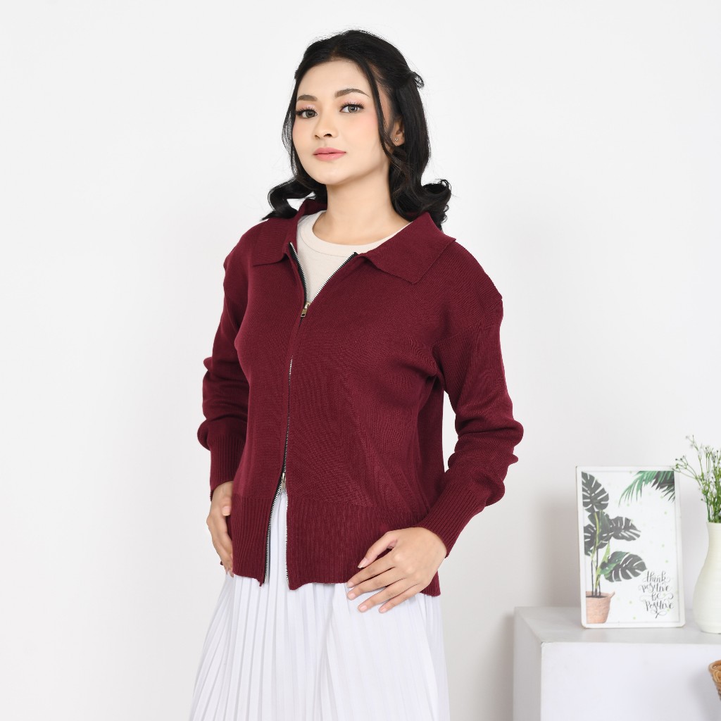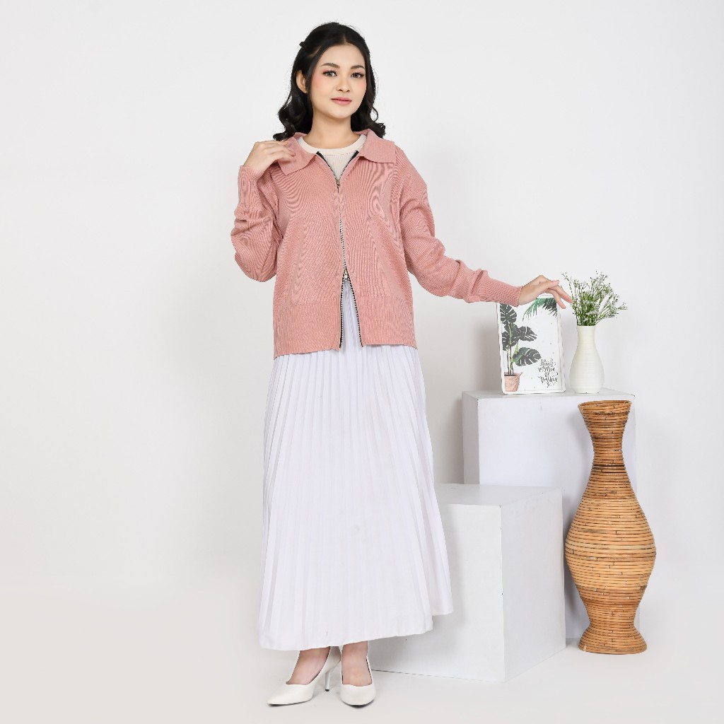 Hazel Double Zip-Up | Baju Wanita | Cardigan Wanit | Knitware Dengan Desain Elegan