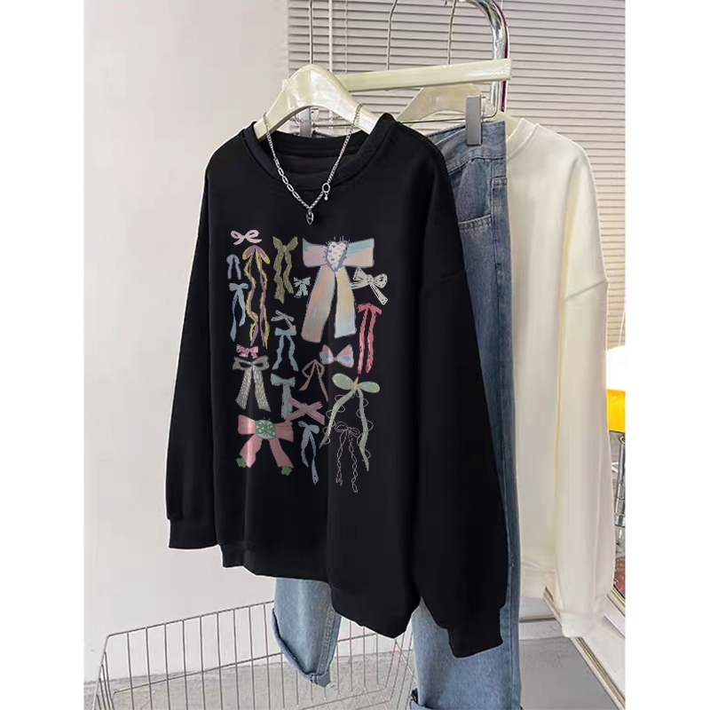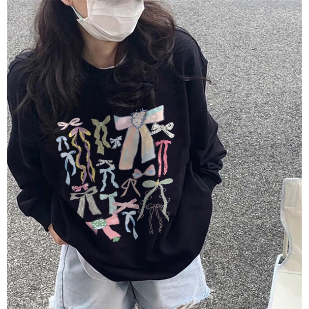 Forteid Sweater Lengan Panjang Oversized Street Style Korean Style/Switer Wanita Oversize/Cetakan Busur/Korean Style Swe