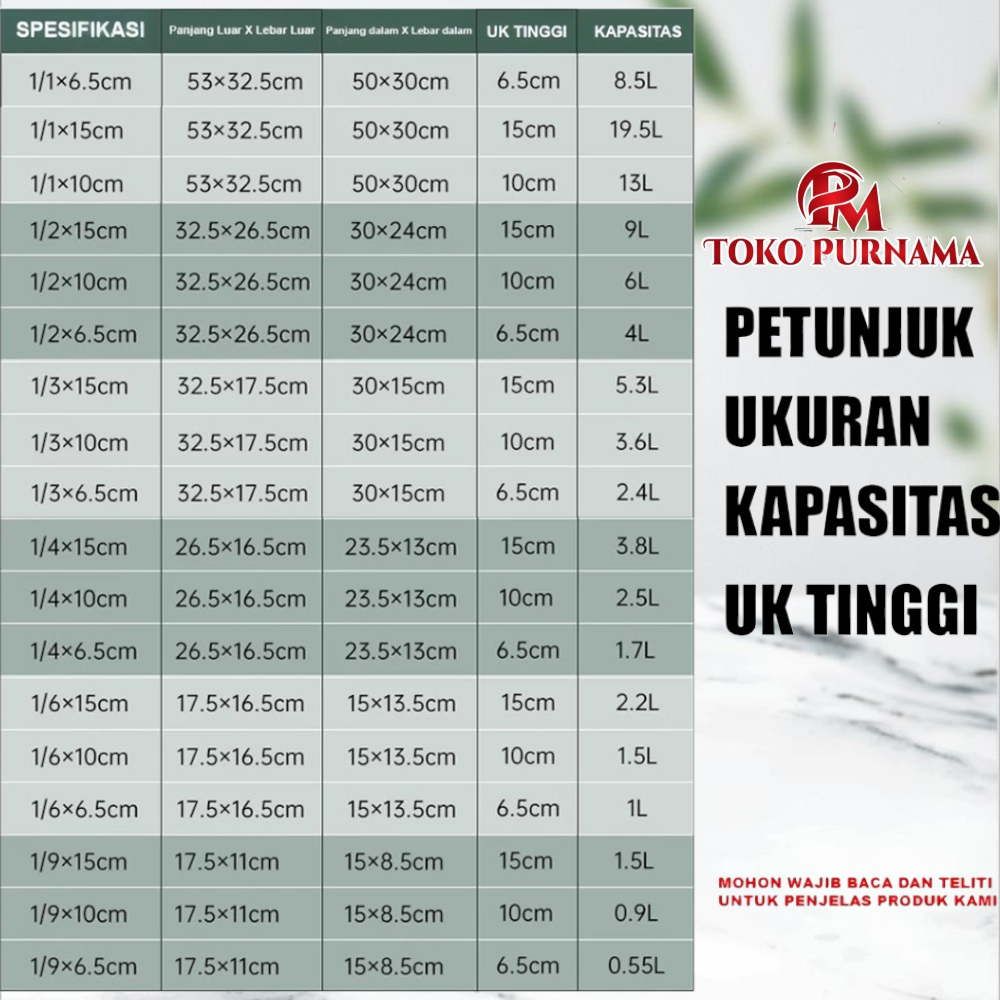 Purnama Food pan Stainless Wadah / Tempat Bumbu prasmanan wadah (1/1 I 1/2 )