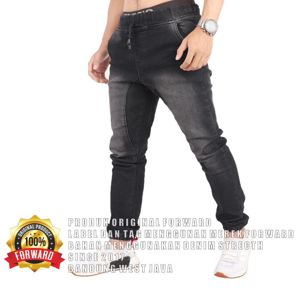 Celana joger jogger pria denim soft jeans casual forward