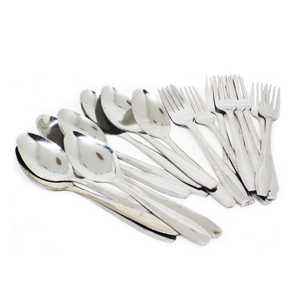 MOS [12 PCS] SENDOK MAKAN STAINLESS SPOON FORK / GARPU ANTI KARAT ISI 12 PCS 1 LUSIN SENDOK BUNGA SENDOK BATIK MURAH MER