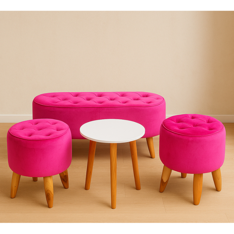 Set Bundling Kaki Kayu - 1 Bench Oval + 2 Stool Bulat + 1 Meja - Set Sofa Minimalis - 1 Set Sofa Minimalis