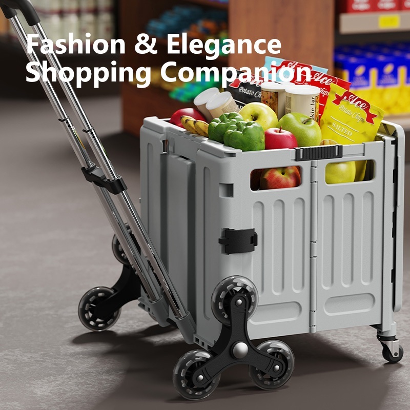 Penyimpanan Troli Belanja Keranjang Lipat Sedang dan Besar Mudah untuk Membawa Roda Keranjang Belanja Trol