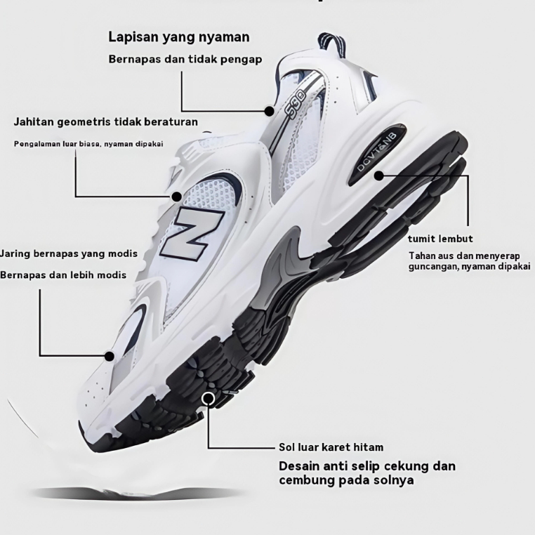 New Balance 530 Model Klasik 100% Original - Sepatu Olahraga Kasual Pria Wanita Warna Hitam Putih - Ringan & Ber