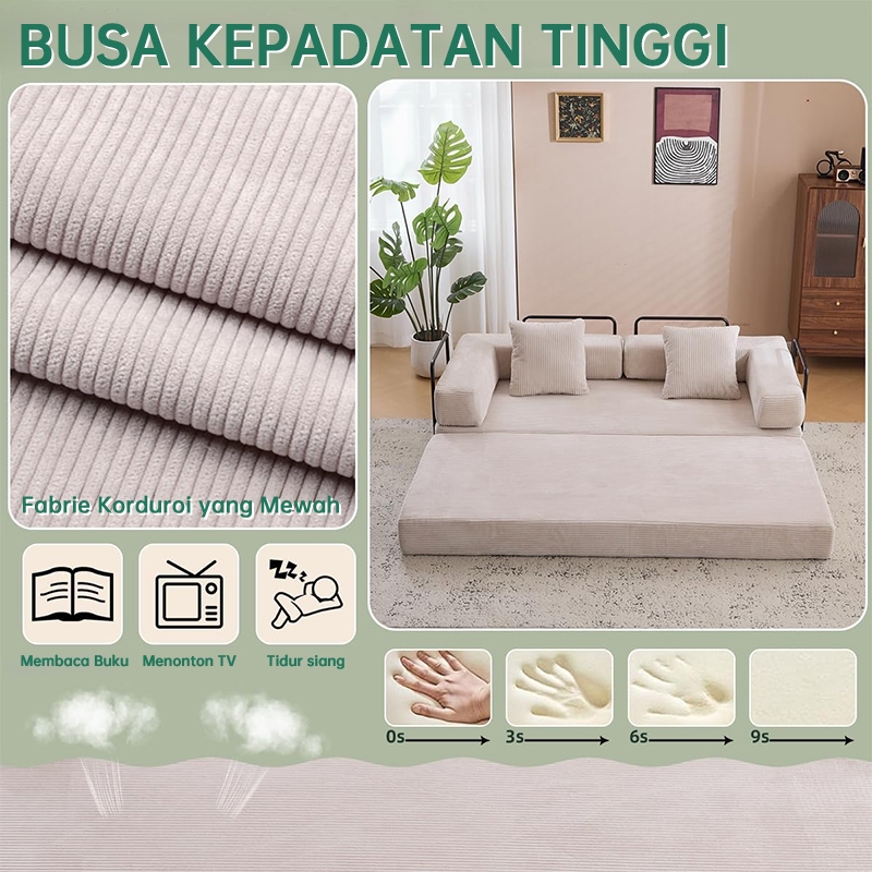 Sofa Ruang Tamu Lipat Minimalis 3 Kursi Bahan Vacuum Anti Bau, Rangka Kuat & Sandaran Bisa Dilepas Sofa Bed