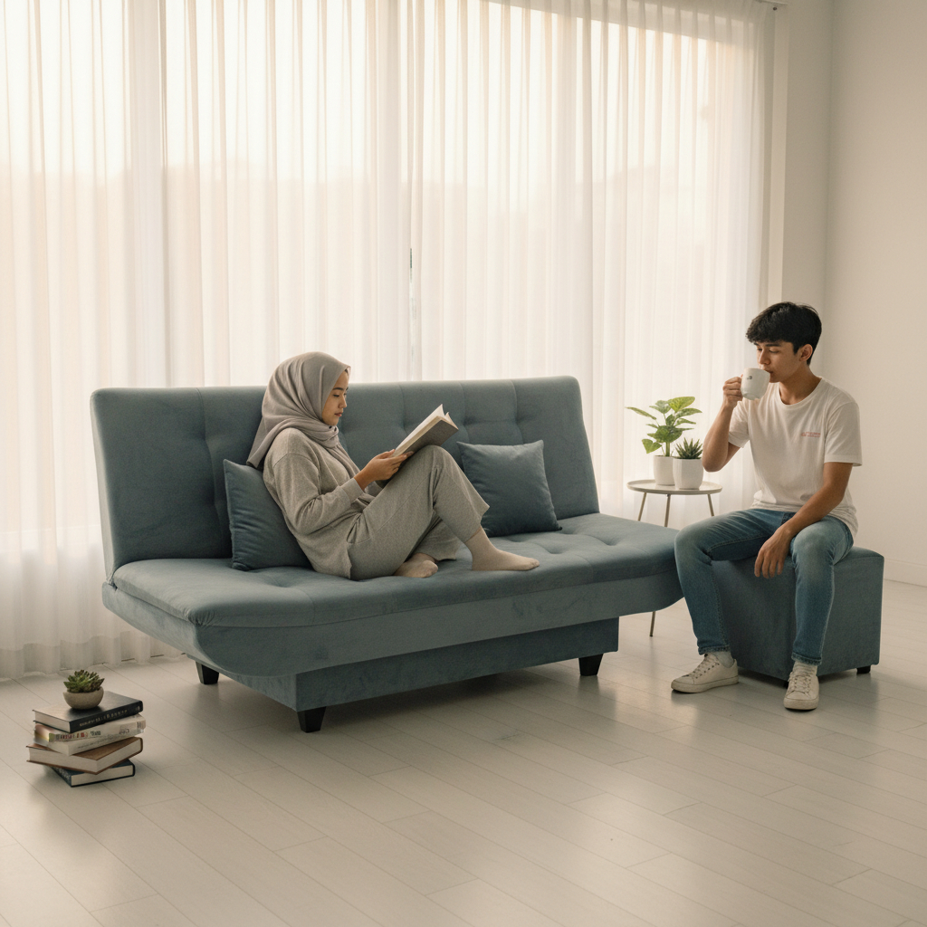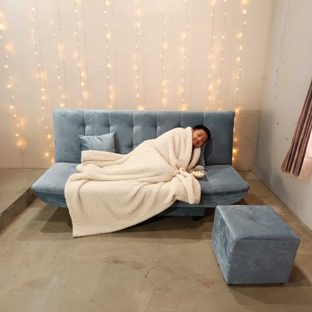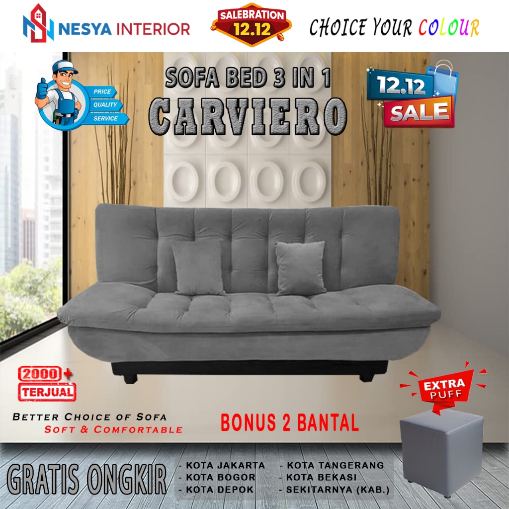 SOFA BED CARVIERO + STOOL (Kursi Tamu & Kasur Santai Keluarga Minimalis)