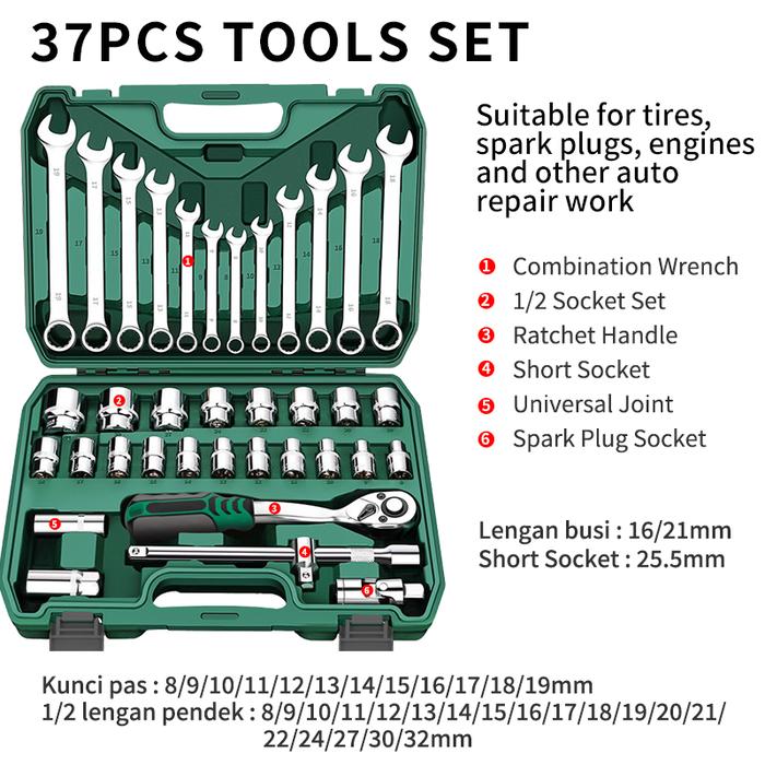 ISKUTool kit Set alat Kunci Sok set 37 pcs/kunci pas Set 12pcs 8-19mm 1/2 kunci Mata Sok lengkap