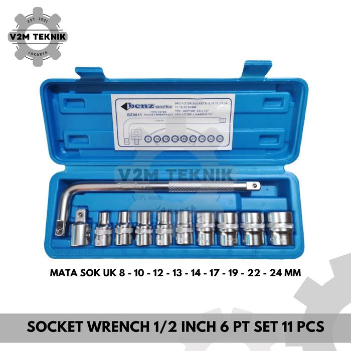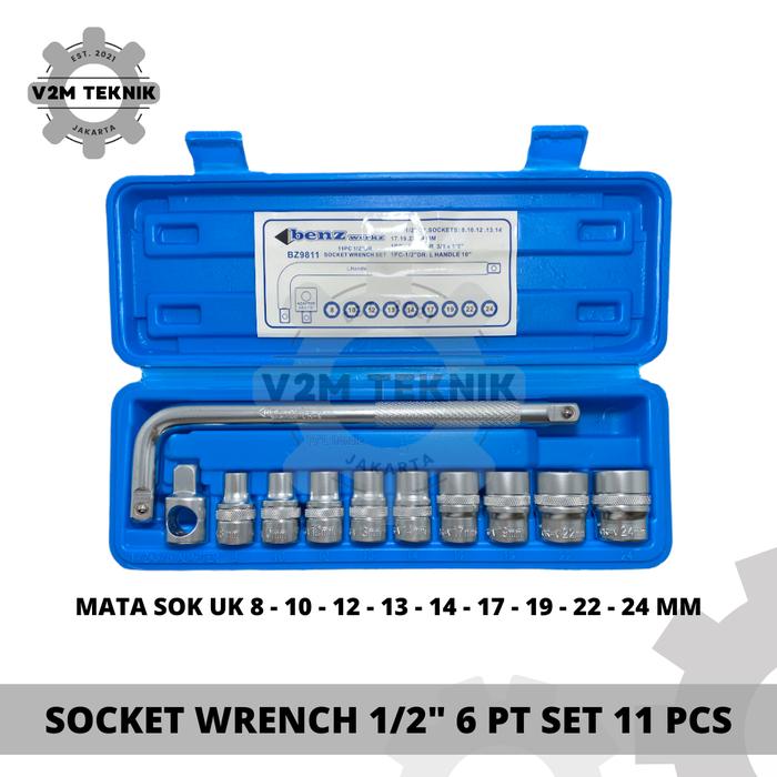 BENZ Socket Wrench Set 11 Pcs / Kunci Sok 1/2" 6 PT / Mata Shock 1/2 Inch Uk 8 - 10 - 12 - 13 - 14 -