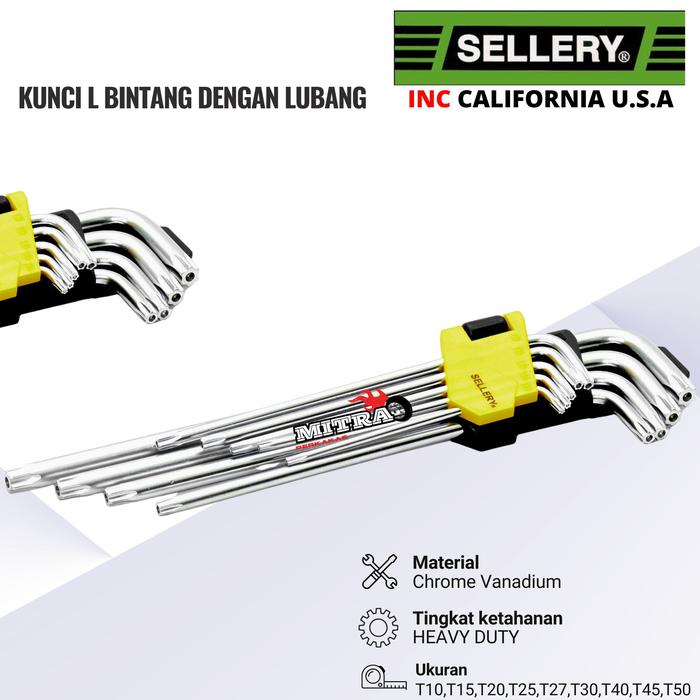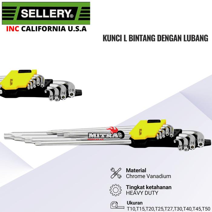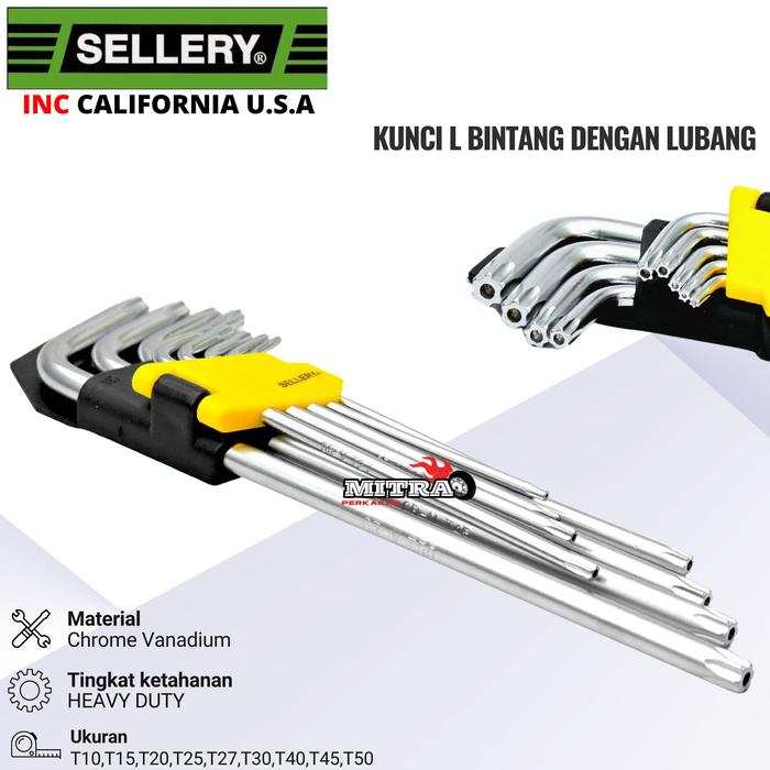 Kunci L Bintang Panjang Lubang Set 9 Pcs Sellery U.S.A. 58-596