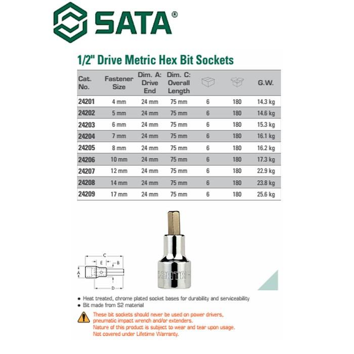 Mata Sok Bit Hex 5 mm 24202 1/2" 50 L Metric Hex Bit Socket Sata Tools