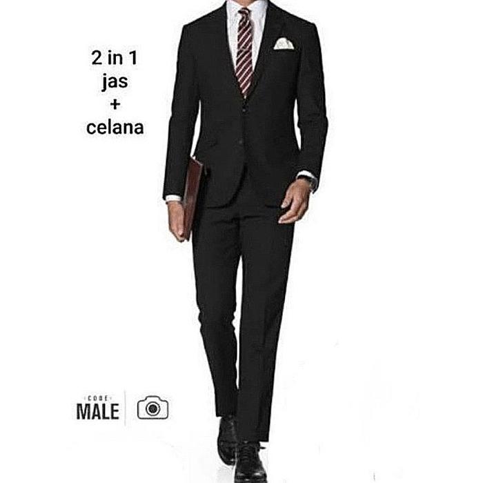 c06e Male 2In1 Setelan Jas Blazer Pria Dan Celana Formal Pria Hitam Premium - hitam L+34