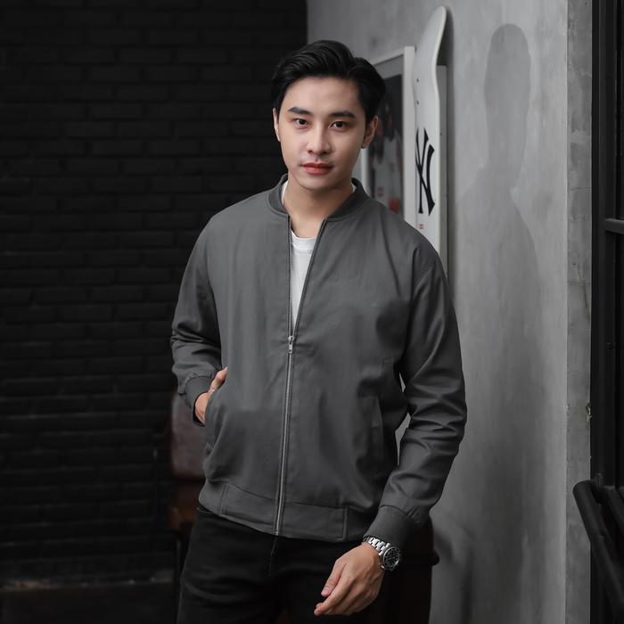 Delibra Jaket Canvas Bomber Pria Premium Lembut Nyaman Casual Distro Keren - Grey Young M