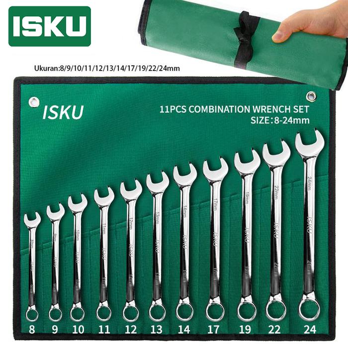 ISKU Kunci Ring Pas Set 11pcs 8-24mm Wrench Set 11pcs Bahan CRV