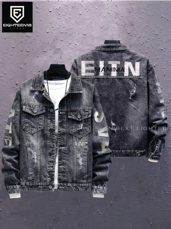 Jaket Jeans EITN Abu Sandwash Pria Wanita Panjang Cowok Distro jaket keren - abu sandwash M