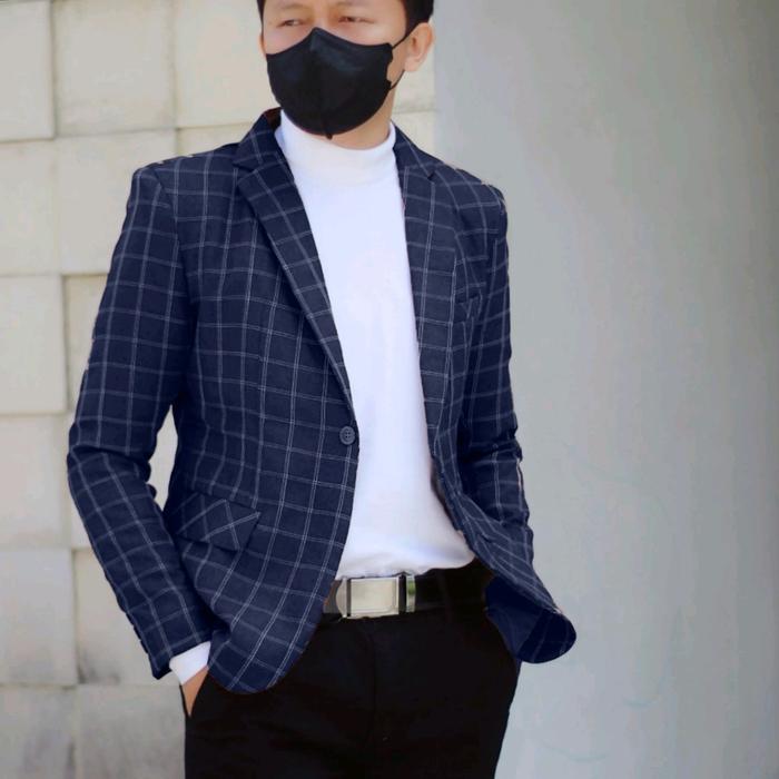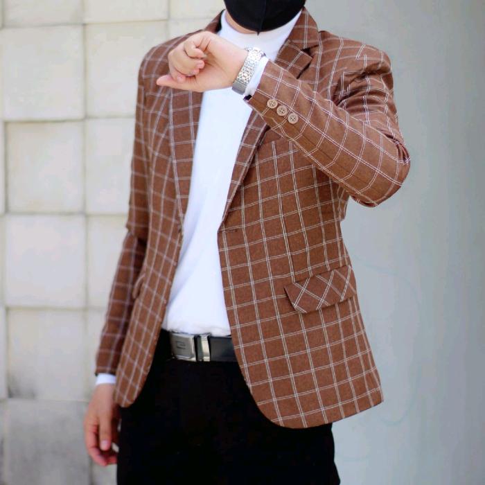 KILLLONG DENIM_ JAS BLAZER TARTAN KOTAK-KOTAK_JAS BLAZER CASUAL SLIMFIT ORIGINAL - coklat S