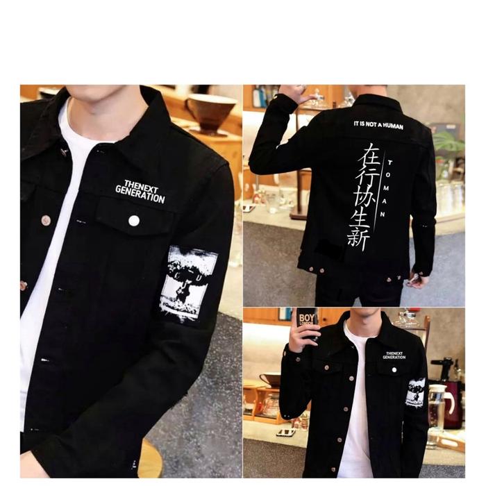 JAKET JEANS DENIM PRIA HITAM MODEL TULISAN KANJI motif cowok distro Kantong Santai - JEANS HITAM TOMAN M