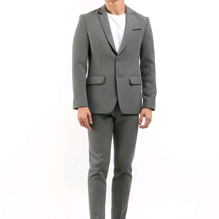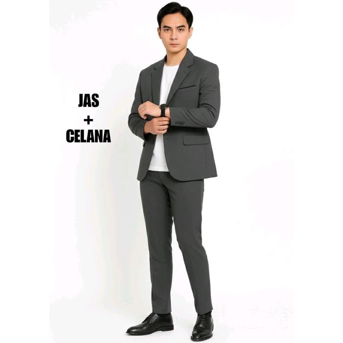 Dvandra.id Setelan Jas + Celana Pria slimfit Jas Formal Hitam - SET 2IN1 DARK GREY S