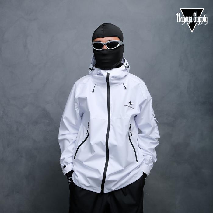 Jaket Gorpcore Anti Air Waterproof Simple Keren Nagoya Supply Pria dan Wanita - Distro Parasut - Putih L