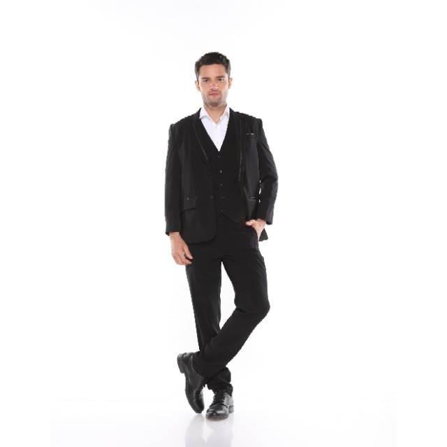 c06e Male Jas Blazer Pria Hitam Slim Fit Dengan Paduan Kerah List Satin - Super black Xs