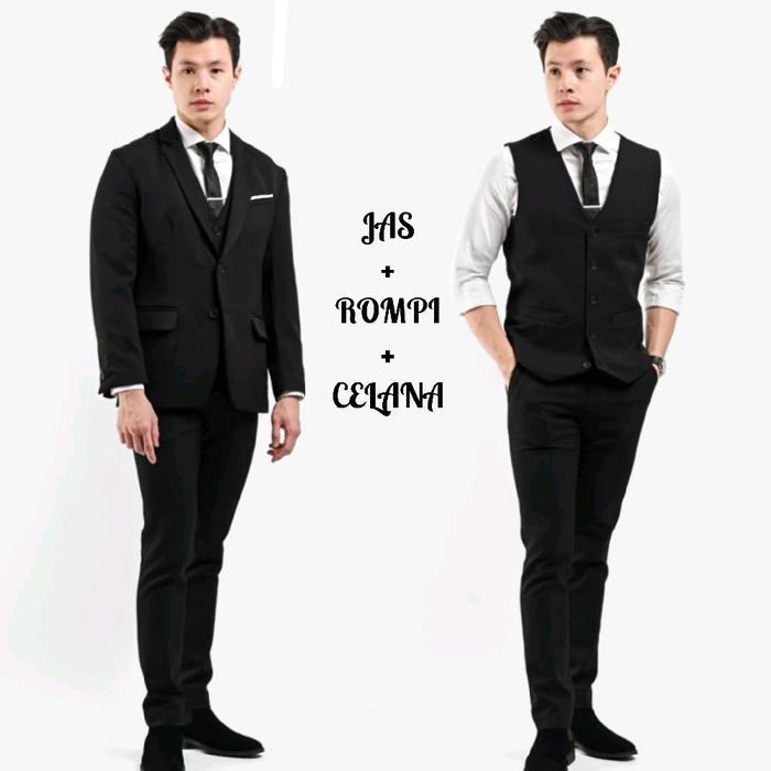 DVANDRA.ID Setelan Jas Formal Pria Slimfit Hitam Set Jas Blazer Kantor wisuda Pengantin - Set Jas 2in1 Fullblack M