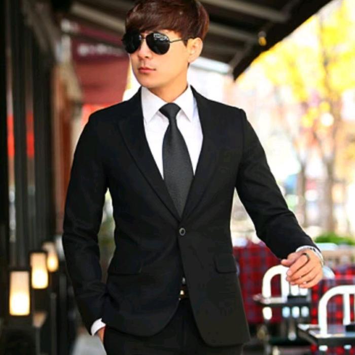 DVANDRA.ID Jas Blazer Pria Hitam Formal Casual Semiwoll Slim-Fitting Kerja Wisuda. Nyaman - Hitam list putih M