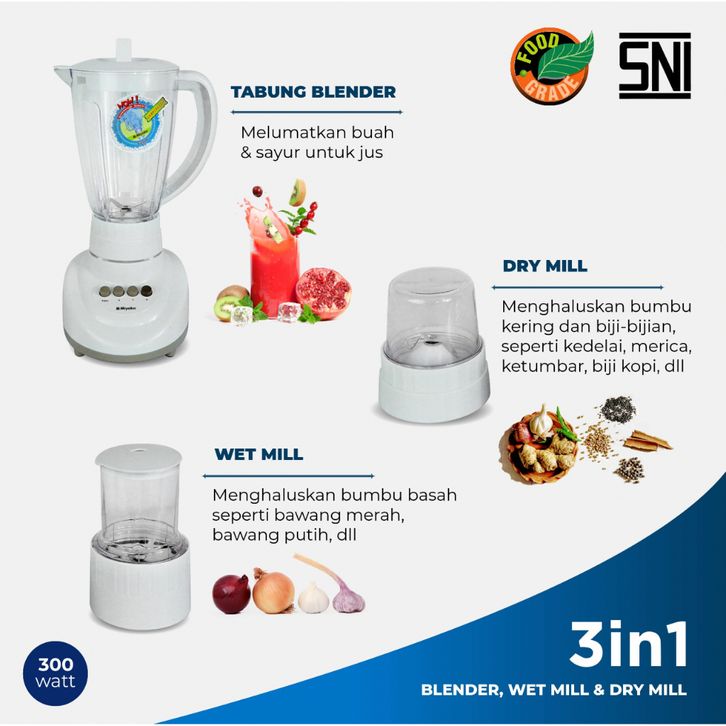 Miyako Blender BL 152 PF White 1,5 Liter / Blender Miyako 3 Tabung Plastik 1,5 Liter BL-152 PF White