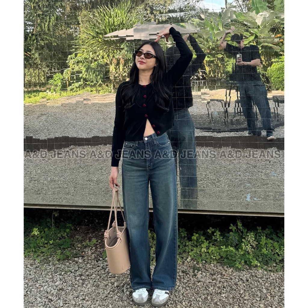 Highwaits Loose Adjustable Baggy Under Age Jeans Celana Jeans Wanita Kekinian Jeans Loose Straight