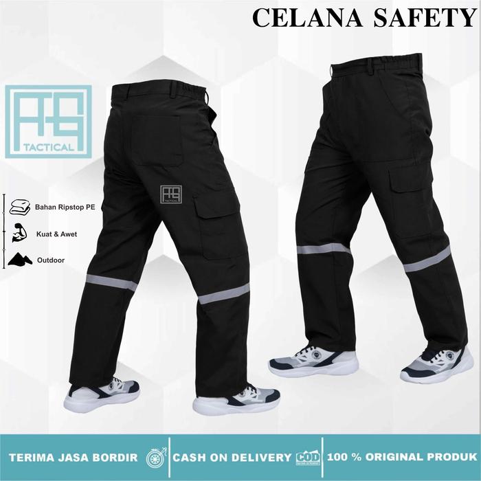CELANA PRIA PANJANG WEARPACK SAFETY SCOTLGHT BAHAN RIPSTOP LY COCOK BUAT PEKERJA INDUSTRI TAMBANG, PERKAPALAN & PROYEK LAPANGAN HITAM NAVY - ABU, M