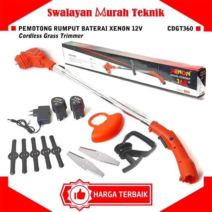 Alat Potong Rumput Cordless Xenon CDGT360 Baterai 12volt Grass trimmer