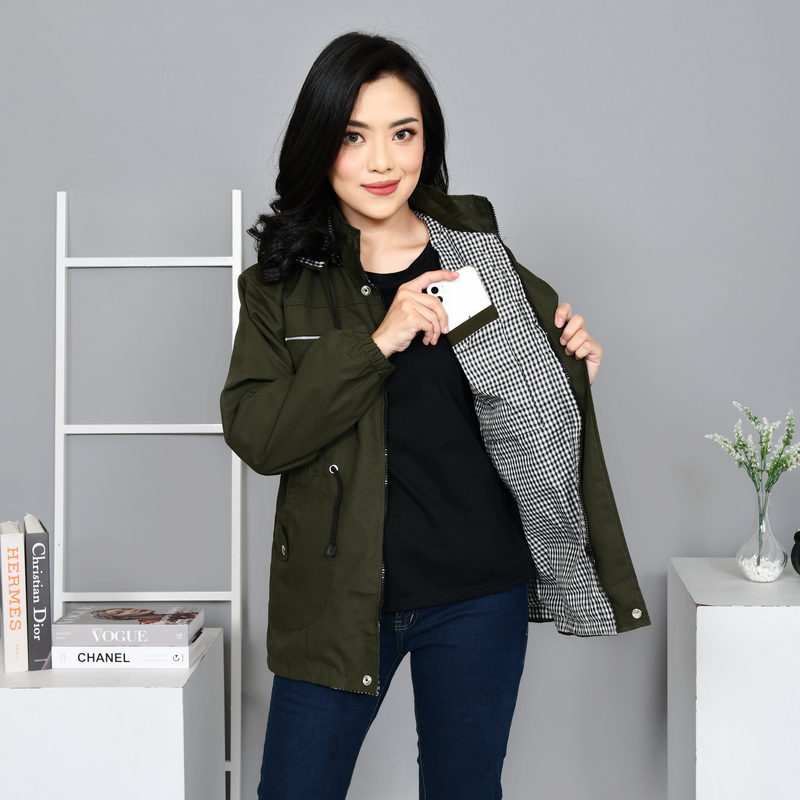 Jaket Parka Cewe Kekinian Jumbo Panjang Bahan Baby Canvas Ukuran L Sampai 4Xl