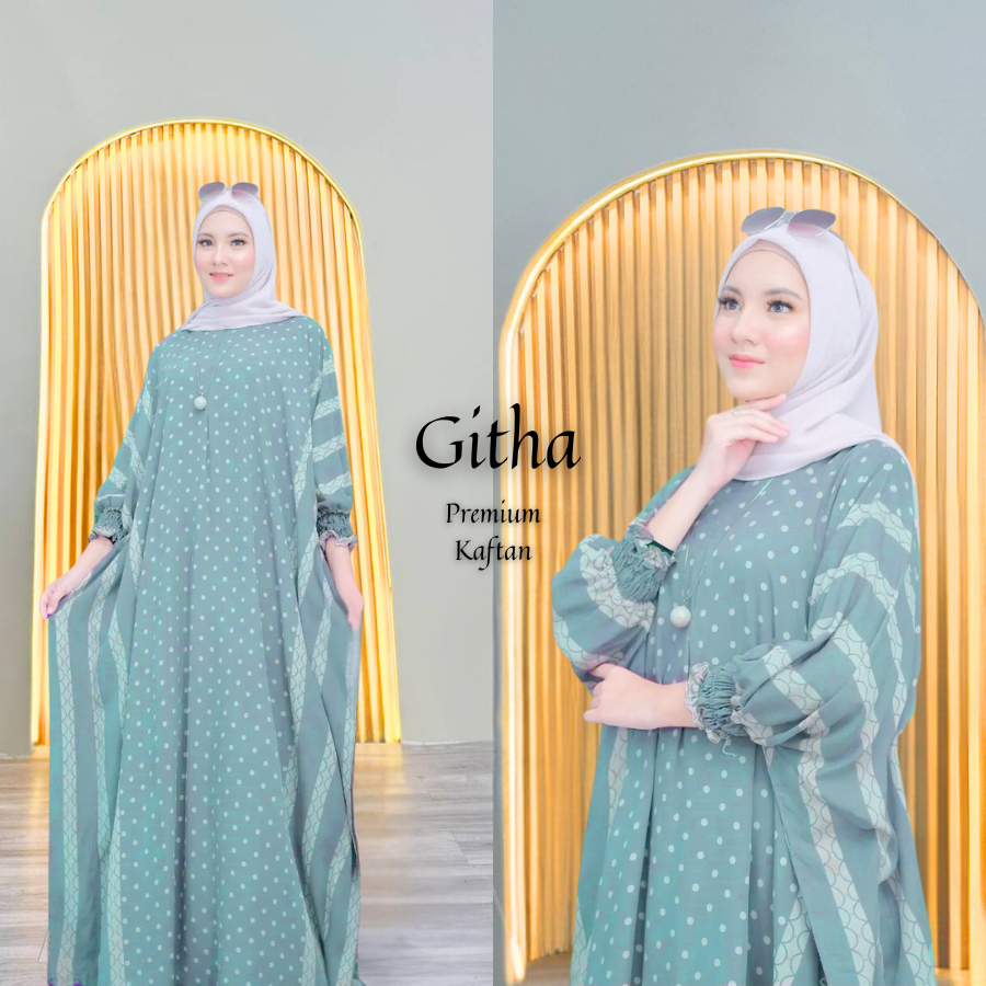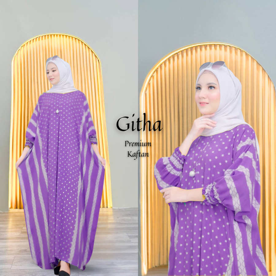 Terbaru Gamis Kaftan Jumbo Motif Githa Adem Cocok untuk dirumah atau untuk Pengajian