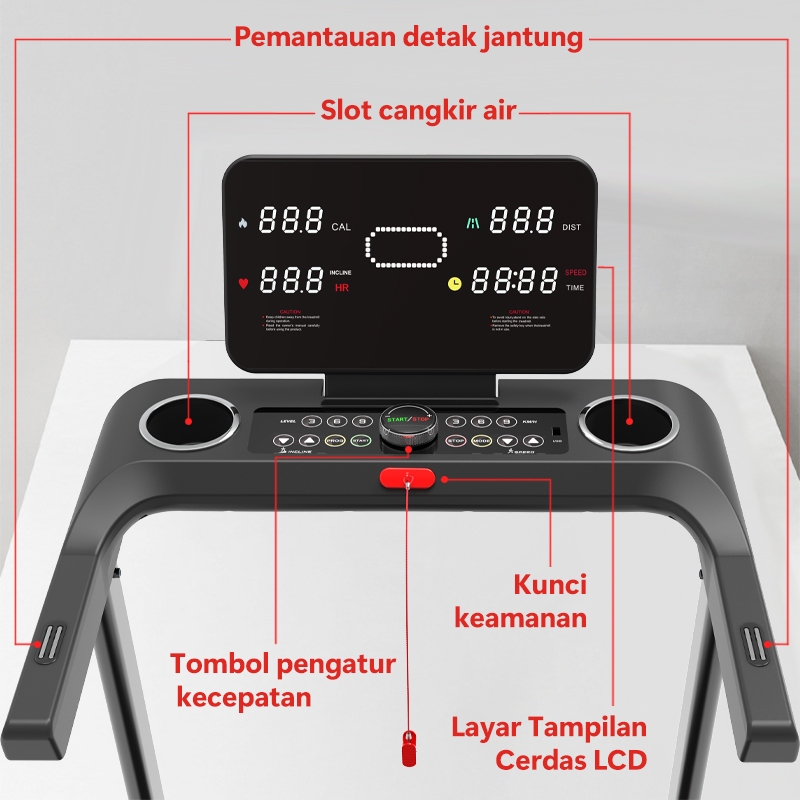MY-HI Treadmill electric low watt Treadmill garansi 7006 Layar LCD Bluetooth Musik BB 480KG 0-15km/h