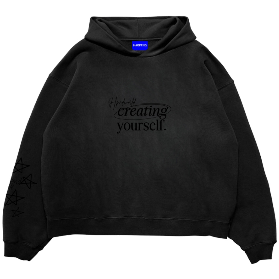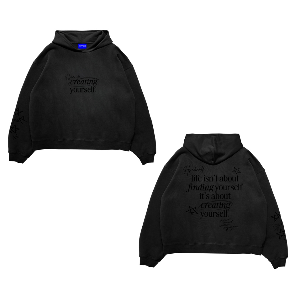 Hpnd - Sweater Hoodie Boxy Fit Original Basic Creat Yourself Black Fleece Limited Edition