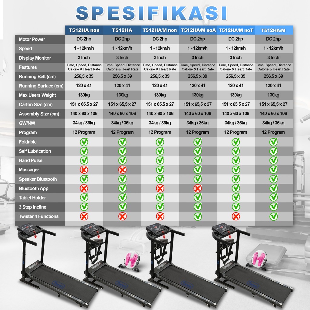 TWEN T512HA +M Treadmill Listrik Treadmill Portable Treadmill Multifungsi Treadmil Lipat Treadmill Electric Low Watt Alat Olahraga